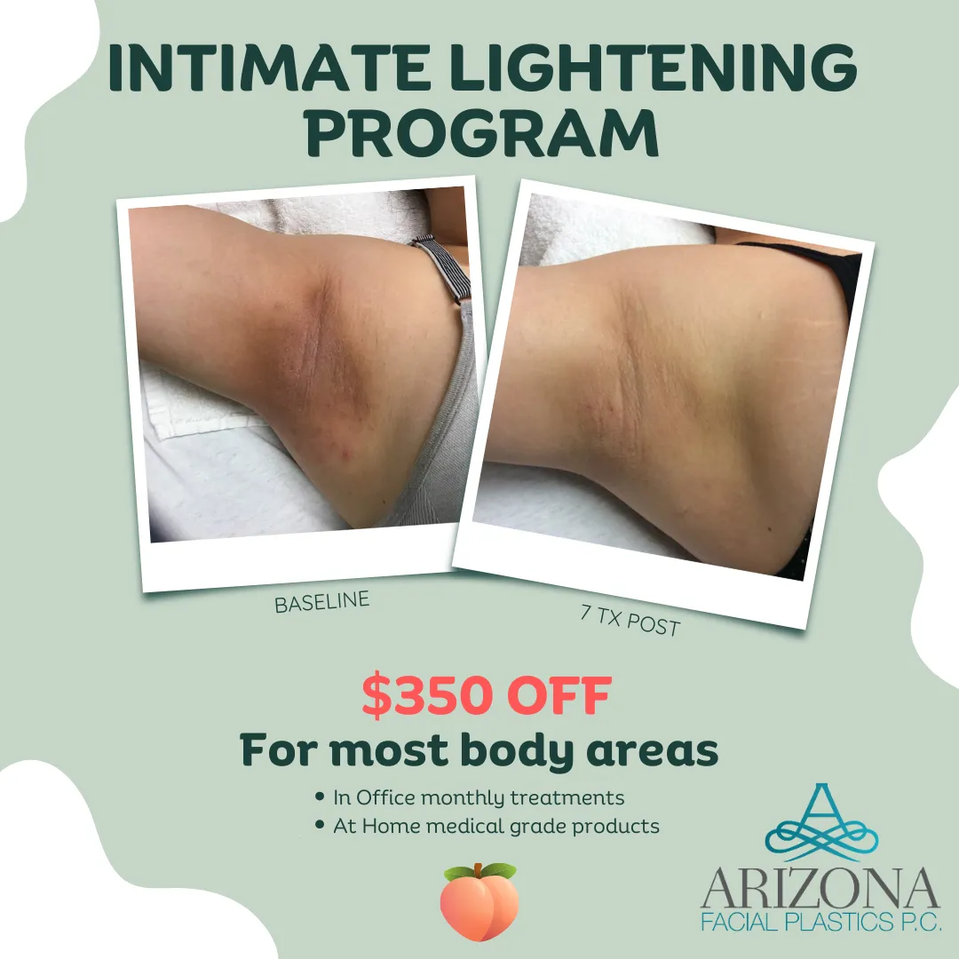 Evens and brightens skin tone. Great for Intimate areas, under arms, thighs and more. 8 laser sessions with medical grade at home products.